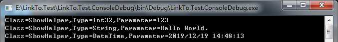 class Program { /// <summary> /// 打印帮助类 /// </summary> public class ShowHelper { /// <summary> /// ShowInt /// </summary> /// <param name="intParam"></param> public static void ShowInt(int intParam) { Console.WriteLine($"Class={typeof(ShowHelper).Name},Type={intParam.GetType().Name},Parameter={intParam}"); } /// <summary> /// ShowString /// </summary> /// <param name="strParam"></param> public static void ShowString(string strParam) { Console.WriteLine($"Class={typeof(ShowHelper).Name},Type={strParam.GetType().Name},Parameter={strParam}"); } /// <summary> /// ShowDateTime /// </summary> /// <param name="dtParam"></param> public static void ShowDateTime(DateTime dtParam) { Console.WriteLine($"Class={typeof(ShowHelper).Name},Type={dtParam.GetType().Name},Parameter={dtParam}"); } } static void Main(string[] args) { #region 非泛型打印方式一 ShowHelper.ShowInt(123); ShowHelper.ShowString("Hello World."); ShowHelper.ShowDateTime(DateTime.Now); Console.Read(); #endregion } }