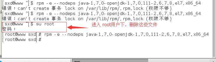 但是会出错,因为在普通用户sxd用户下,并没有操作这几个文件的权限。