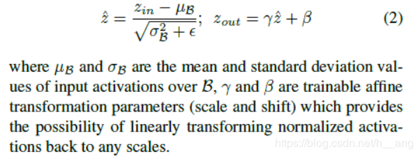 利用BN层的缩放因子:BN层已经被大多数现代CNN网络采用,作为一种标准的方法来使得网络快速收敛并获得更好的性能。BN归一化激活值的方法给了我们设计一种简单高效的方法的灵感,即与channel-wise缩放因子的结合。尤其是,BN层使用mini-batch的统计特性对内部激活值归一化。$z_{in}$和$z_{out}$分别是BN层的输入和输出,B指代现在的minibatch,BN层执行下面的转换: