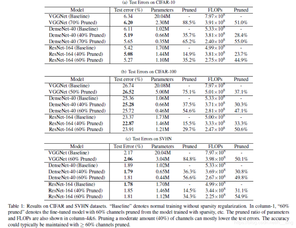 convnets"中对不同的层使用不同的阈值做剪枝,我们这里对所有的层设置了一个全局阈值,这是为了简单化。然后剪枝阈值是由所有比例因子中的百分比决定,例如修剪40%或60%的通道。