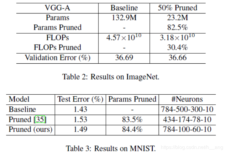 在ImageNet和MNIST数据集上,训练的迭代次数epoches分别为60和30,minibatch为256,初始学习率为0.1,在训练迭代次数的1/3和2/3时缩小10倍;