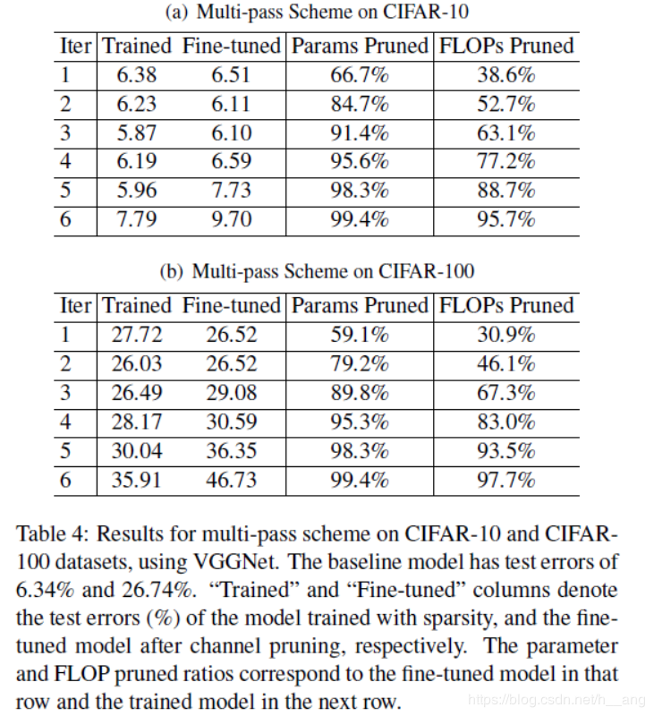 在剪枝过后,我们获得了一个更窄更紧凑的模型,接下来便是微调,在CIFAR、SVHN、MNIST数据集上,微调使用和训练相同的优化设置;在ImageNet数据集上,由于时间的限制,我们仅对剪枝后的VGG-A使用$10{{-3}}$的学习率学习5个epoches;
