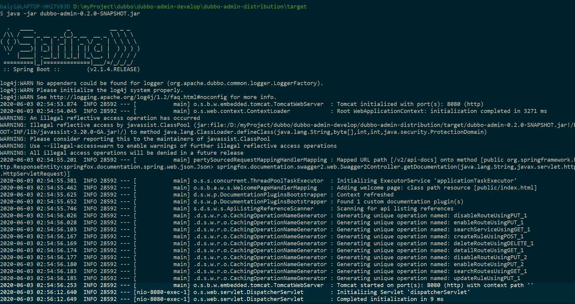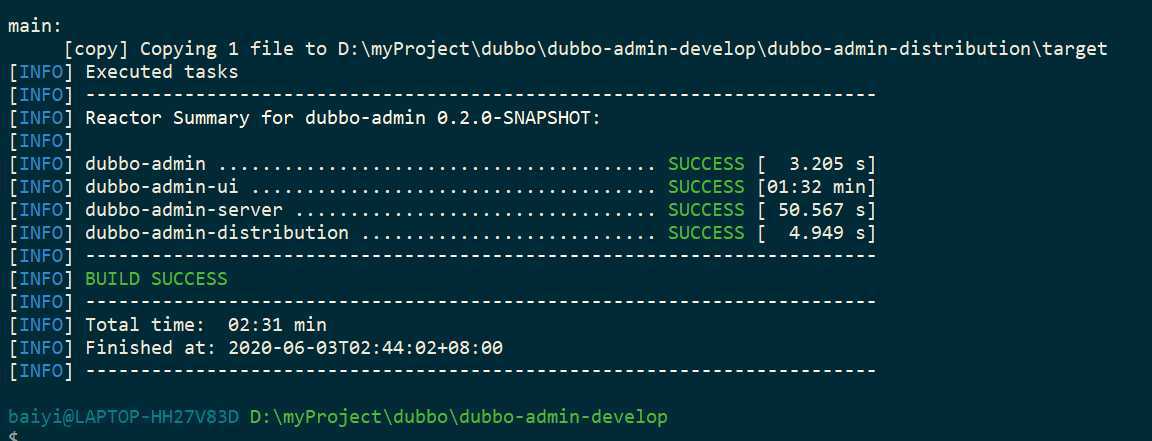 四、构建服务端,使用cmd打开D:\myProject\dubbo\dubbo-admin-develop目录,输入下列 命令: