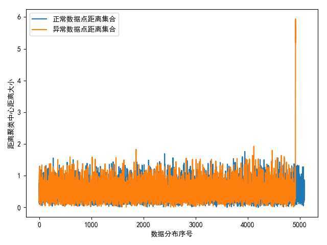 图 正常数据集合和异常数据集合到各自聚类中心的距离分布