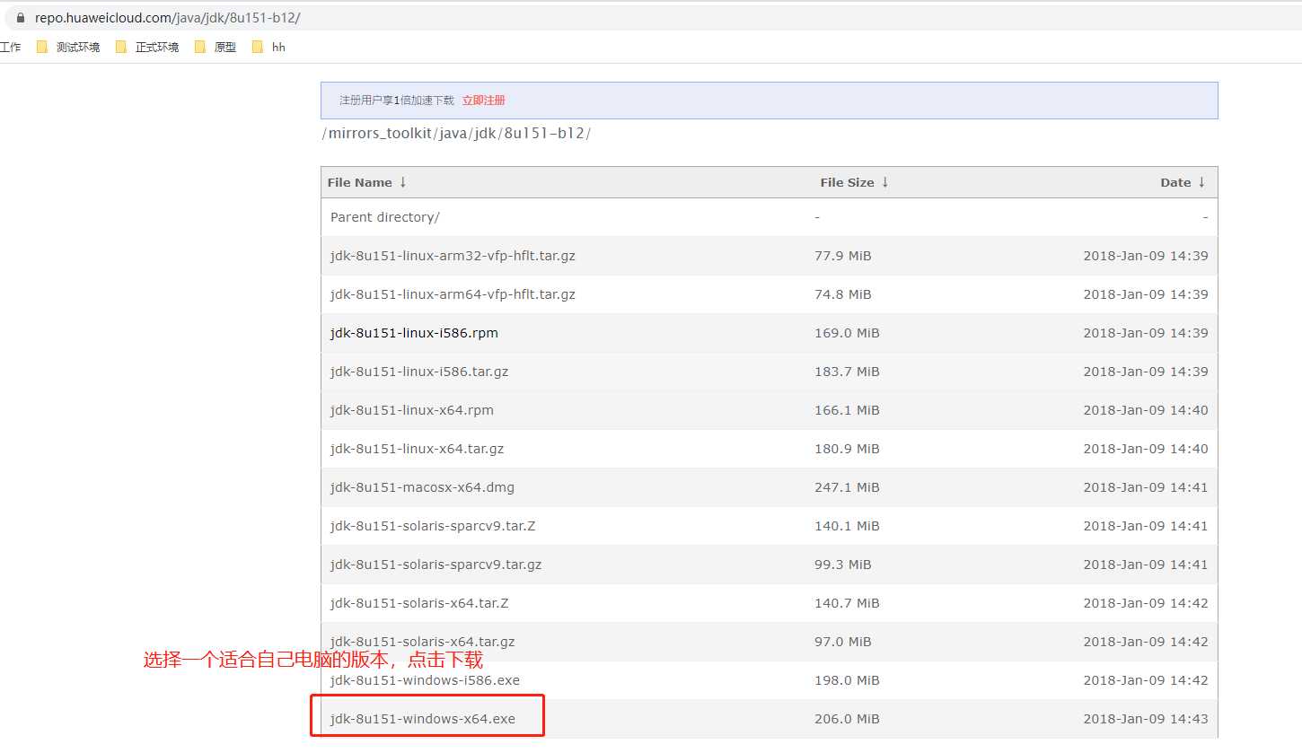 1、下载jdk,官网下载速度太慢,镜像下载地址:https://repo.huaweicloud.com/java/jdk/,选择1.8的版本