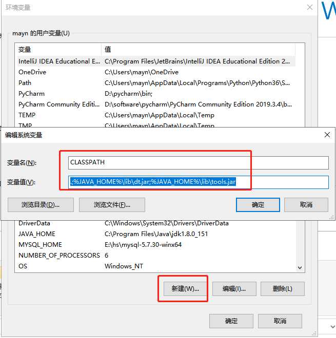 (2)、新建CLASSPATH变量 CLASSPATH = .;%JAVA_HOME%\lib\dt.jar;%JAVA_HOME%\lib\tools.jar