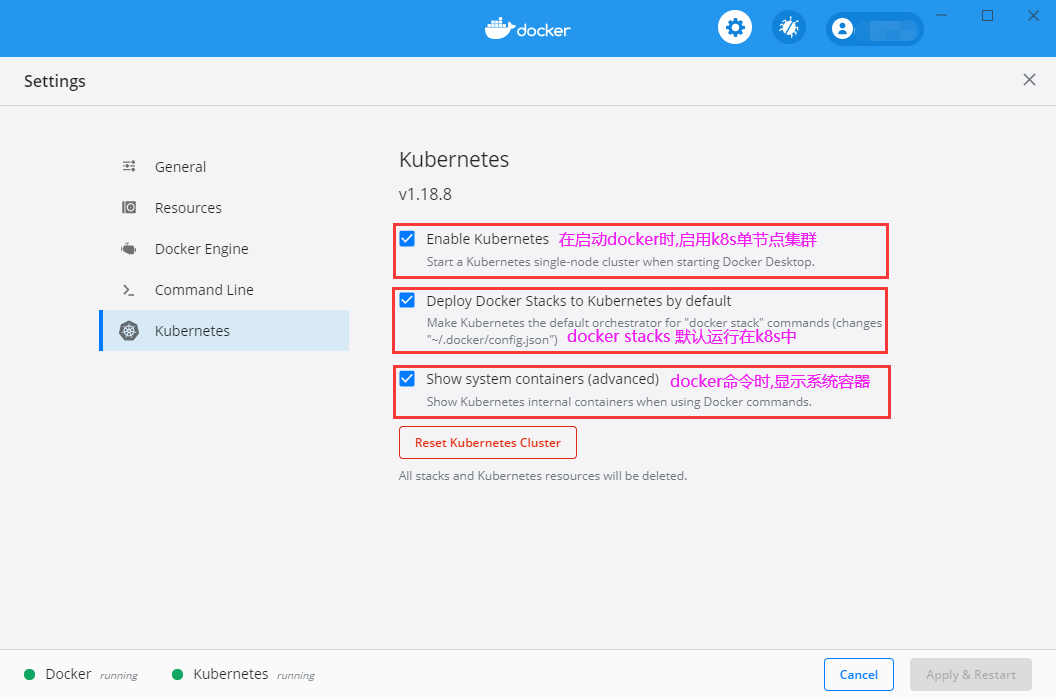 由于Cenos环境问题,本次验证先采用本地windows docker 中启用k8s做验证
