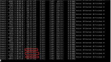 我们可以从上图看出来这个tps在缓慢的下降,持续压测的话应该为继续下降,甚至降低到0