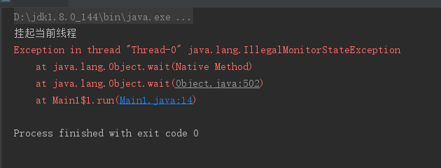 结果: 线程调用了共享对象的wait()方法阻塞挂起了自己,然后主线程休眠3秒之后中断了thread线程,中断后thread抛出了InterruptedException异常后返回并终止