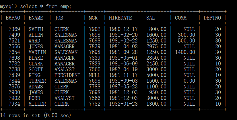 例:查询emp表所有内容