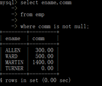 例3:查询出津贴不为null的所有员工