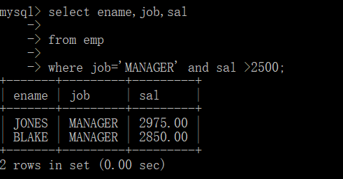 where job=‘MANAGER‘ and sal >2500;