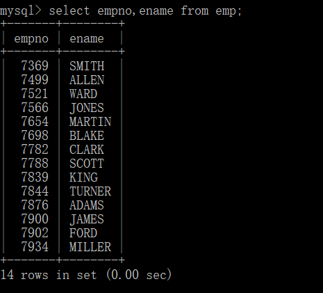 例:查询员工的编号和姓名