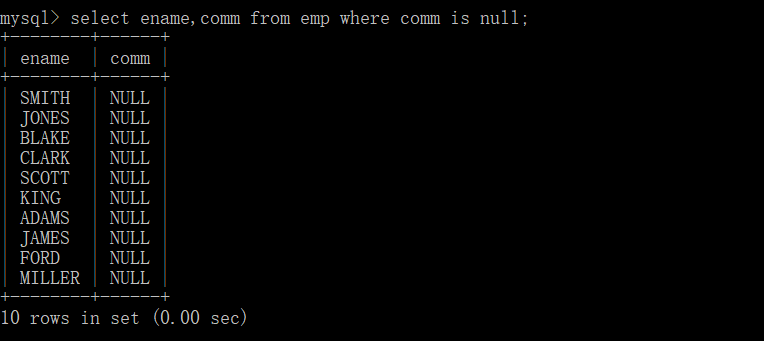 select ename,comm from emp where comm is null;