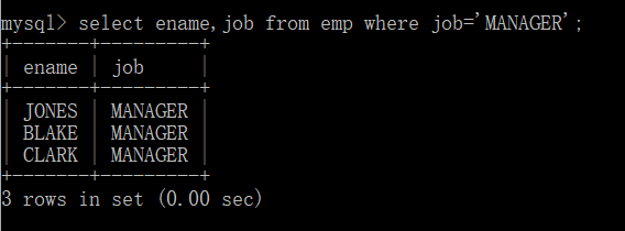 例2:查询job为MANAGER的员工