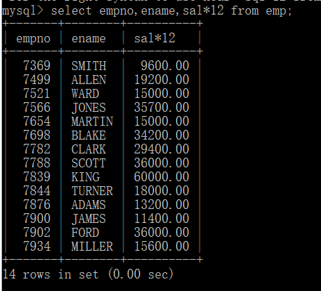 即:select ename,(sal+comm)*12 as ‘年薪‘ from emp;