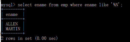 select ename from emp where ename like ‘%N‘;