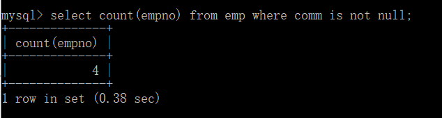 select count(comm) from emp; comm这个字段中不为空的元素总数。