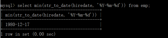 例:取得最早入职得员工(可以不使用str_to_date转换)