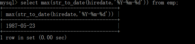 select max(str_to_date(hiredate,‘%Y-%m-%d‘)) from emp;