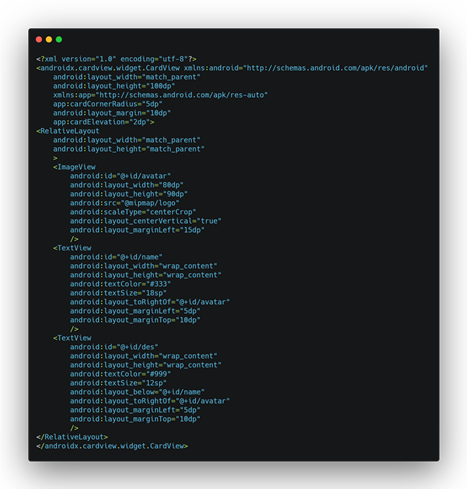 接着,在每一个使用该卡片设计的地方,使用<include /> 标签将card_item.xml布局引入进来。
