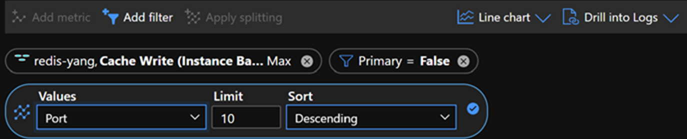 Cache Read 计数器来创建警报。但是,只查看主节点的流量(注:Azure Redis有两个节点,一主一从),写入流量(409KB)与上图中的38.07MB却存在巨大的差别, 难到这是有连接直接操作从节点,而不通过主节点?