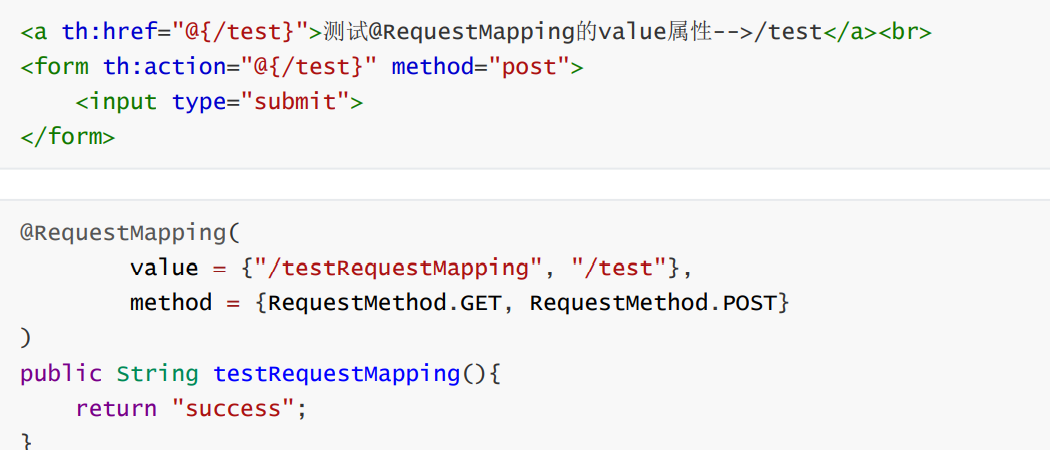 @RequestMapping注解的value属性是一个字符串类型的数组,表示该请求映射能够匹配多个请求地址 所对应的请求