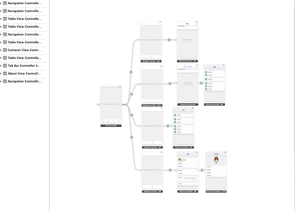 设置控制器关联或出现问题,tableviewcontroller默认实现了数据源的方法,两个控制器把它反过来管理。关于导航条。导航条上显示什么内容由栈顶控制器来确定,下面的导航条只有一个(栈顶控制器就是tabbar控制器)。