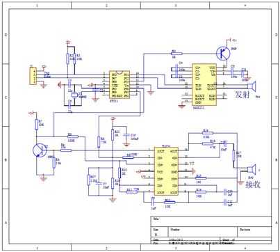 >_<" 通过分析上面集成在一个MCU上的代码可以知道:发送部分仅占用40KHz发送函数用于适时的发送一段连续的超声波;接收部分负责计时、等待接收模块的1-0-1中断、计算距离、将数据发送给上位机等功能。其中有一个核心而隐蔽的问题,即:时间同步问题!当在一个MCU上时,我们只要简单的启动计时器同时启动超声波发送,而在两个MCU上实现这个并不是件容易的事!最终我想到了用一根线来同步时间,即:当接收模块准备好时,把该线上的电平置1-0产生下降沿(P20引脚),然后把该线的另一端连接将发送模块的外部中断0的引脚(P32引脚),采用中断方式监听起跑命令。当发送模块收到起跑命令时便发送一串超声波,同时接收模块开始计数,剩下的部分就和在同一个MCU上的原理很相似了~具体请参考代码(注意接收部分在发送起跑命令后的延时技巧!这是一种可以被中断剪短的延时,用来等待超声波接收模块接收有效的数据)