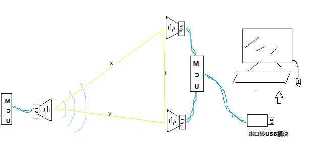 >_<" 到上面为止我们已经完美地把超声波发射与接收模块都做好了,那么现在就要研究下如何利用他们进行测距了~(PS:嘻嘻这里俺可不是简单的用一个发送模块一个接收模块进行直线空间上的测距,这种东西早都比较成熟了,网上一搜一把,而且非常便宜!我要做的是利用2个接收模块及一个接收模块在二维平面上对物体进行定位!)