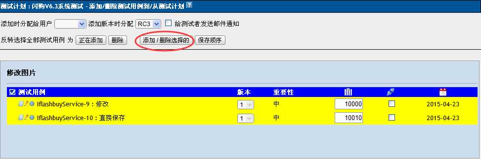 你可以选择该测试计划中要执行的测试用例,也可以根据版本下拉列表来选择该测试计划下需要执行的测试用例版本。选择好后,点击“增加选择的测试用例”按钮,可以将选择好的测试用例分配给该测试计划。