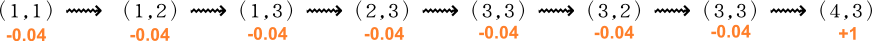 下面橙色的值是每个 state 的 reward。 在这例子中,每个不是终点的格,也会扣 0.04 分。