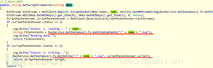 lua脚本在本恶意软件中是寄宿在c#代码中被调用的,这里程序提供了个KopiLua的虚拟机,而lua文件都是运行在此之上。bootScript.lua文件中引导信息如下:
