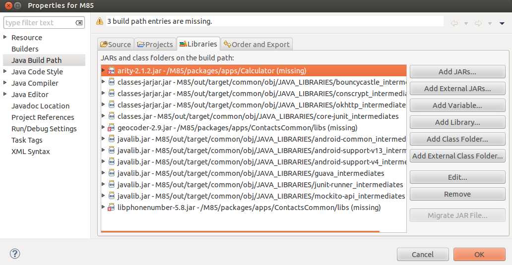 把android源码作为一个工程导入eclipse 导入前先检查.classpath里的文件在android源码中是否有相应的文件(文件夹),否则也会破坏android源码(一般是多添加文件/文件夹),.classpath里多余的路径可删除