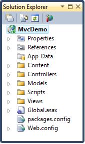 所有的 MVC 应用程序的文件夹名称都是相同的。MVC 框架是基于默认的命名。控制器写在 Controllers 文件夹中,视图写在 Views 文件夹中,模型写在 Models 文件夹中。您不必再应用程序代码中使用文件夹名称。